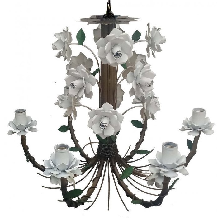 Lustre Rustico em Ferro Artesanal com Flores para Area Gourmet - Branco