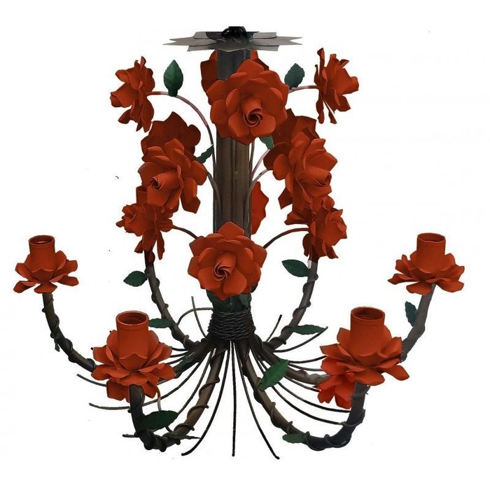 Lustre Rustico em Ferro Artesanal com Flores para Area Gourmet - Laranja Laranja