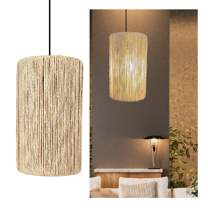 Adicione um toque de sofisticação e calor ao seu ambiente com nosso Pendente Decorativo em Sisal na deslumbrante cor palha. Com uma cúpula de 30cm de altura e 16cm de largura, este pendente não é apenas uma fonte de iluminação, mas uma obra-prima decorativa que certamente se destacará em qualquer espaço.