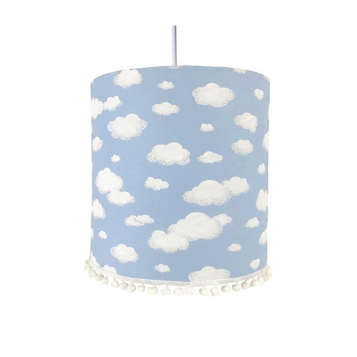 Lustre Tubular Pompom Nuvem Azul Quarto Bebê Infantil Menino