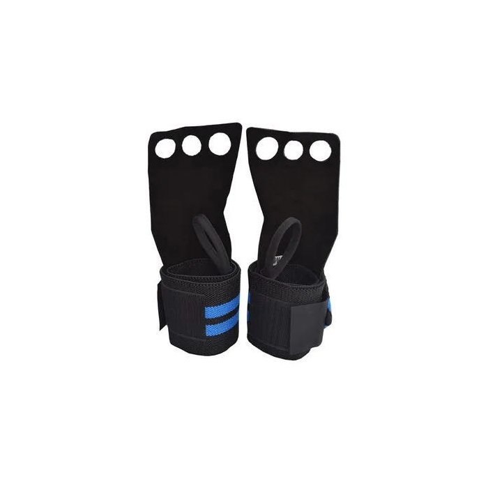 Couro Legítimo, com 3 furos, encaixe perfeito nos dedos, protegendo às palmas das mãos, evitando calos e bolhas, e com a munhequeira, excelente para os exercícios de movimentos de puxada.