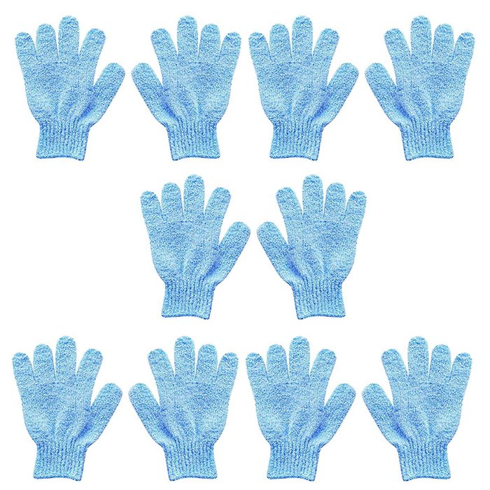 Luva de Banho Kit 5 Pares Esfoliante Corporal Chuveiro Banheira Espuma Ombro Perna Braço Esponja Ski Azul
