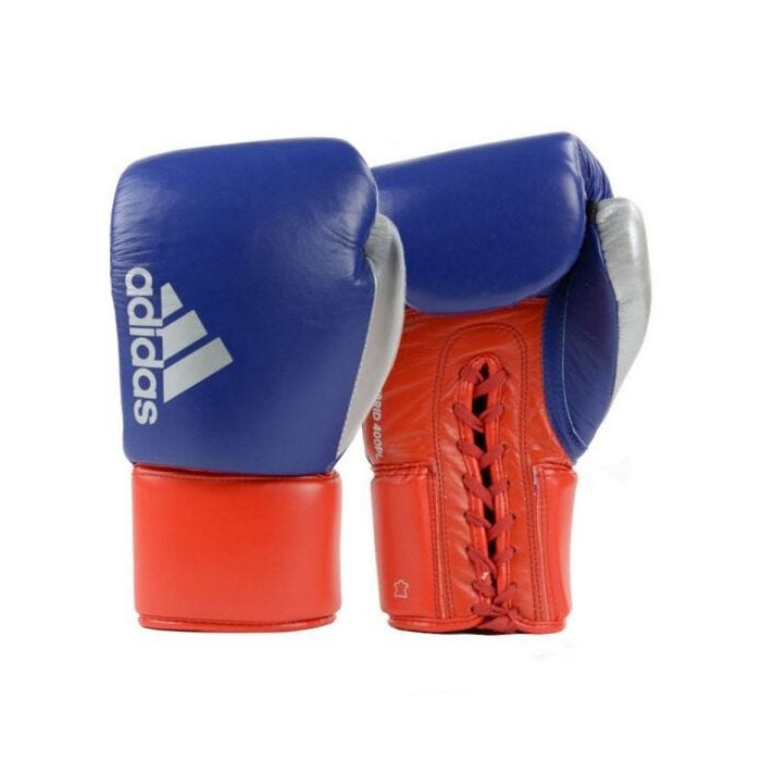 Luva de Boxe Muay Thai Adidas Hybrid 400 Pro Lace Azul/Vermelho - 10 Oz