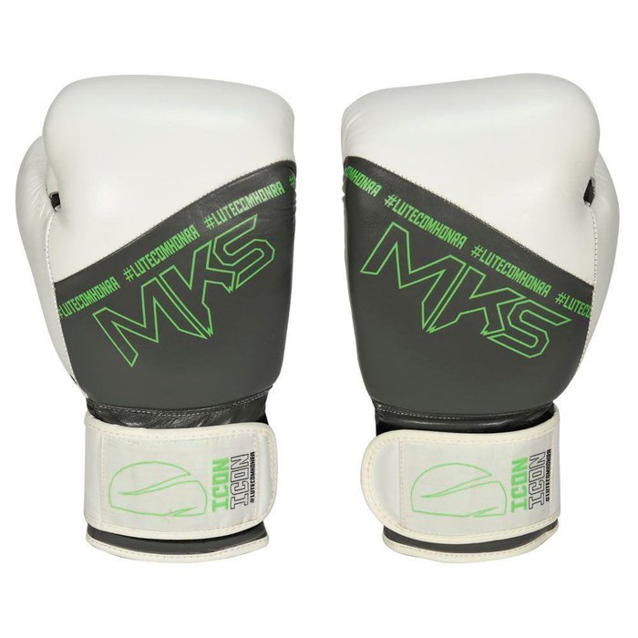 Luva De Boxe Muay Thai Profissional Couro Mks Icon Cor Branco E Cinza Tamanho 10 Oz