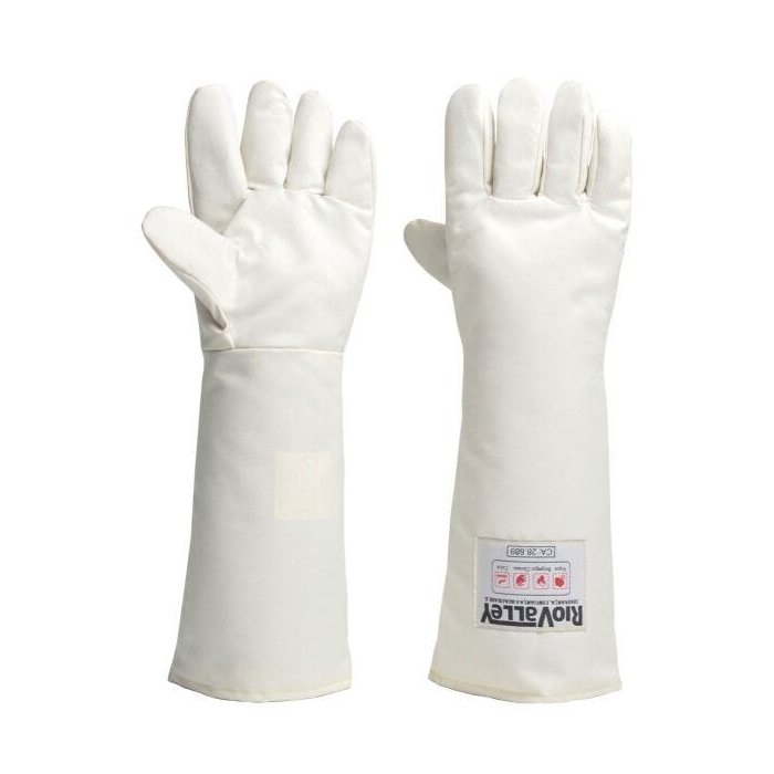 Descrição Luva de segurança confeccionada em tecido especial com tratamento impermeabilizante em silicone; forração destacável, com uma camada em não tecido de fibra de poliéster e uma camada de tecido de algodão com tratamento impermeabilizaste em silicone. Especificação Técnica CA: 28689 Comprimento: 45 cm Cor: Branca Temperatura contato: até 250º C