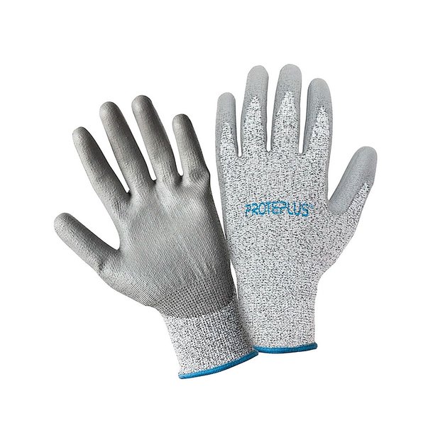 Luva Fibra Vidro e Polietileno Banho Poliuretano Características: - Luva de segurança tricotada em fibra de vidro e polietileno- Palma, dedos e ponta dos dedos antiderrapantes revestidos em poliuretano, alta aderência, resistência mecânica sem perda de tato- Dorso liso para maior ventilação das mãos do usuário- Punho tricotado em fibra de vidro, polietileno e elastano, com acabamento em overloque- Utilizado Fio Dyneema® com nível 5 de proteção contra corte Informações Técnicas: - Aprovado para : Proteção das mãos do usuário contra agentes abrasivos, escoriantes, cortantes e perfurantes- Atende as normas : BS EN 388:2003 e 420:2003 + A1:2009- Resultados de desempenho : EN388. 4543 Itens inclusos: 1 Luva Fibra Vidro e Polietileno Banho Poliuretano Marca: Proteplus Modelo: 358,0001 / 0002 / 0003 Garantia: O fabricante garante este produto ao cliente contra qualquer defeito de fabricação no prazo de 03 (três) meses. *Imagens meramente ilustrativas.