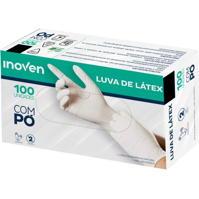 Luva de Látex com Pó Descartável para Procedimentos Caixa com 100 Unidades Inoven - P