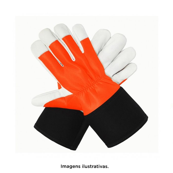 Luva de segurança modelo com 05 dedos confeccionada em couro vaqueta na palma, e na ponta dos dedos. Este modelo conta com reforço interno em vaqueta. O dorso e face dos dedos é produzido com nylon e tem elástico no centro para melhor posicionamento da luva. Punho em material dublado para melhor calçar.