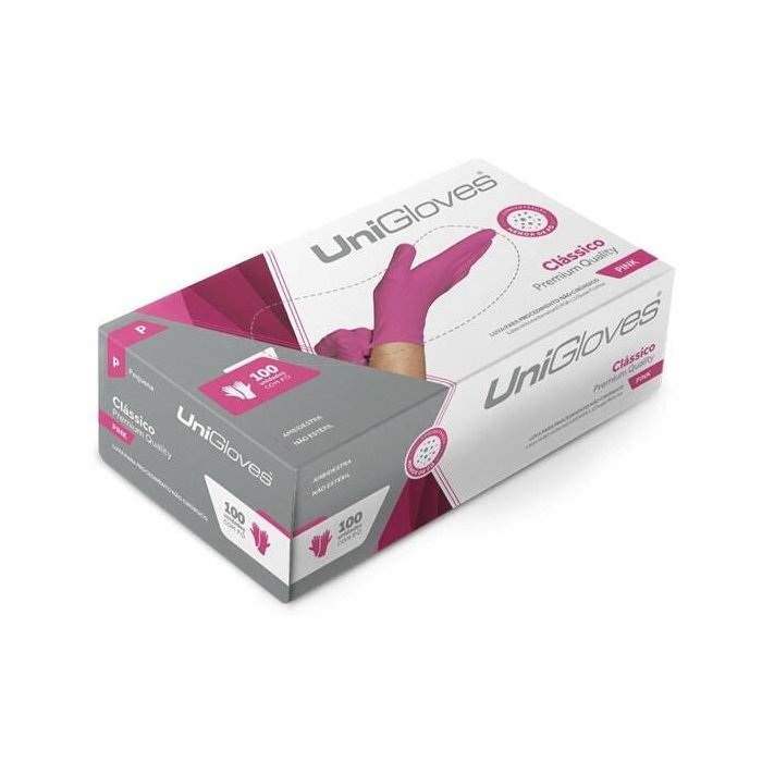 Luva Látex Procedimento Descartável C/Po Rosa Premium Uniglove - P