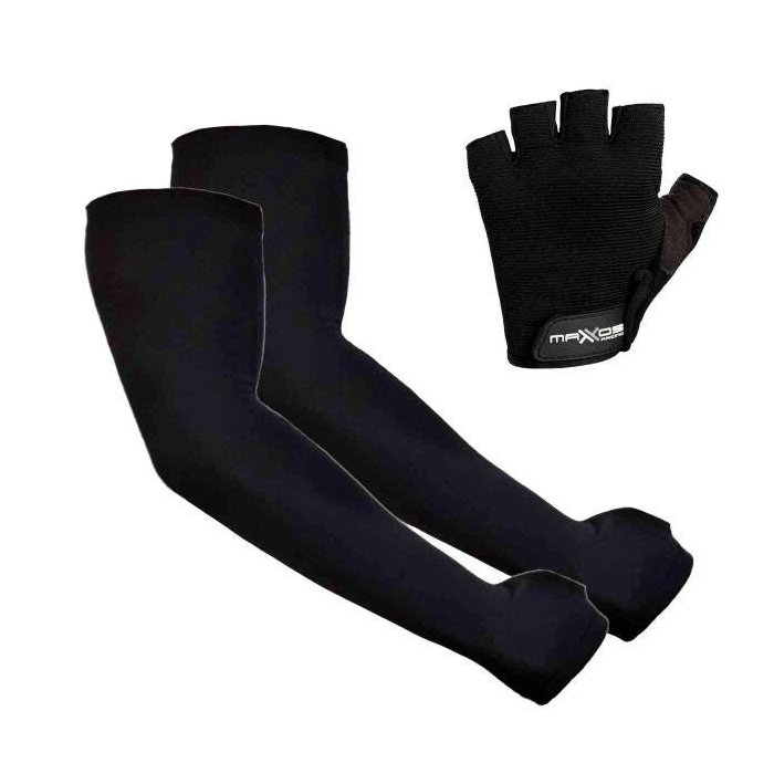 + 1 par manguito verão baseagua de proteção uv 50+ preto polegar