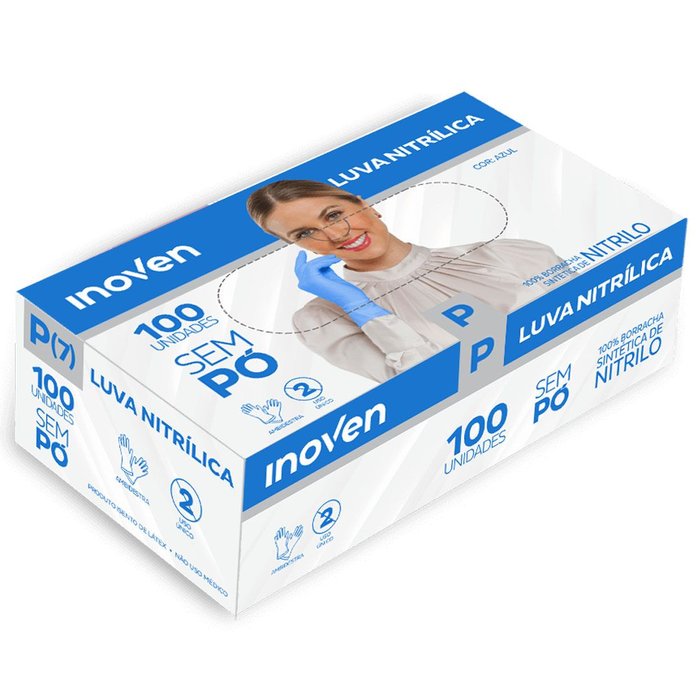 Luva Nitrílica Sem Pó Caixa c/100 Unidades Azul - Inoven