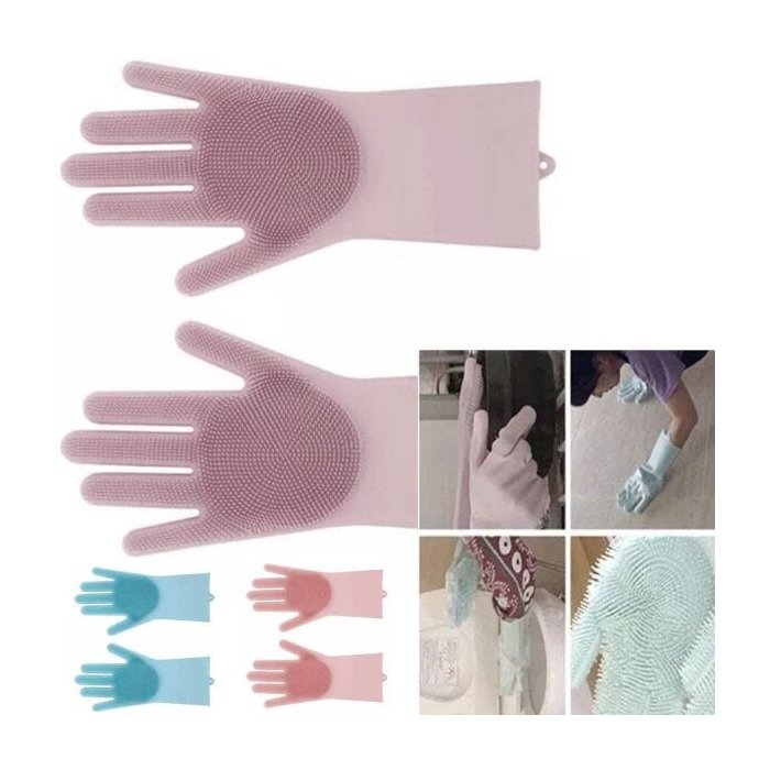 Luva Par Magica Escova de Limpeza Silicone Lava Loucas Banho Caes Resistente (BSL-LIMP-4) - Salmão
