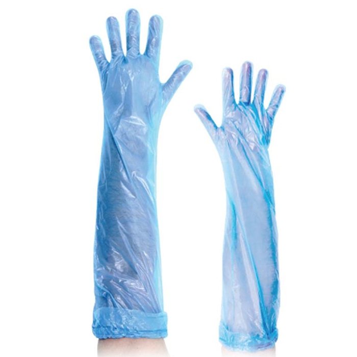 Luva Polietileno Longa Azul Pacote com 100 Unidades - Volk
