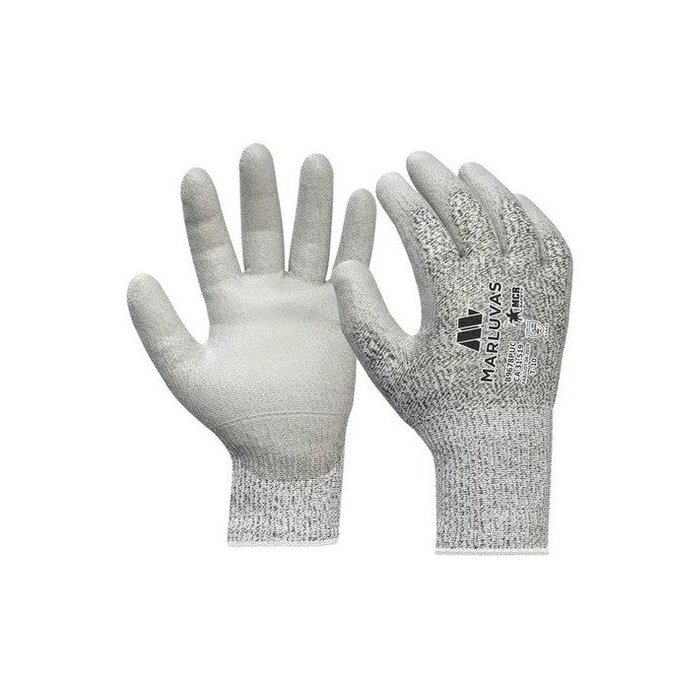 Luva tricotada em fibras sintéticas de alta resistência a corte e banhada com Poliuretano (PU) na cor cinza na palma e nas pontas dos dedos. Extremamente confortável para atividades que exijam sensibilidade tátil, alta aderência em superfícies secas, destreza e alta resistência a abrasão e a corte. Sua modelagem proporciona ergonomia e redução da fadiga muscular. Possui dorso ventilado para respirabilidade e conforto e punho tricotado para evitar a entrada de resíduos sólidos.
