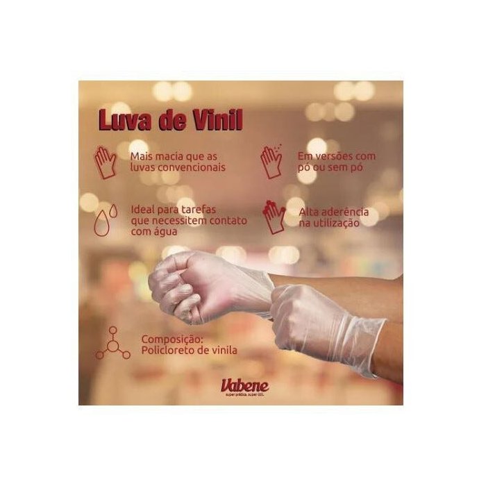 Luva Vinil Descartável Mais Elástica com Pó 100U PM G Vabene