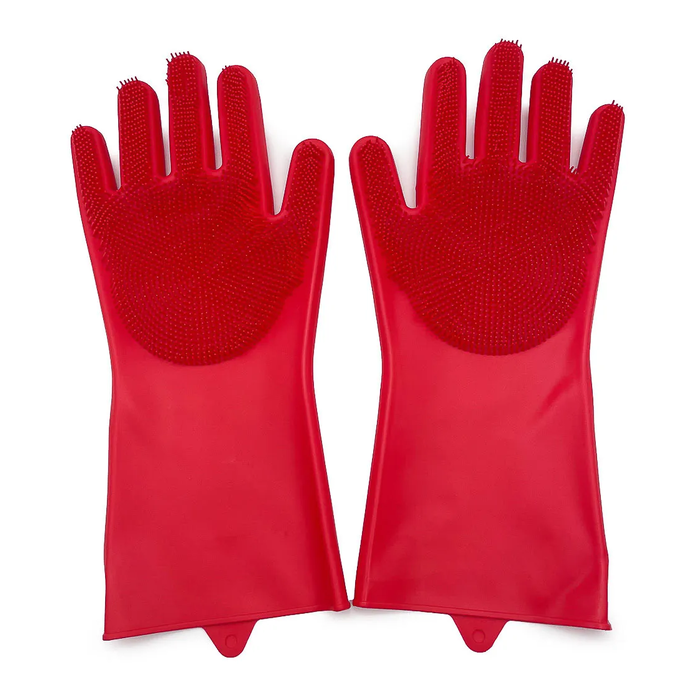 Luvas de Silicone Limpeza Esponja Macia Lavar Louça Multiuso - Vermelho