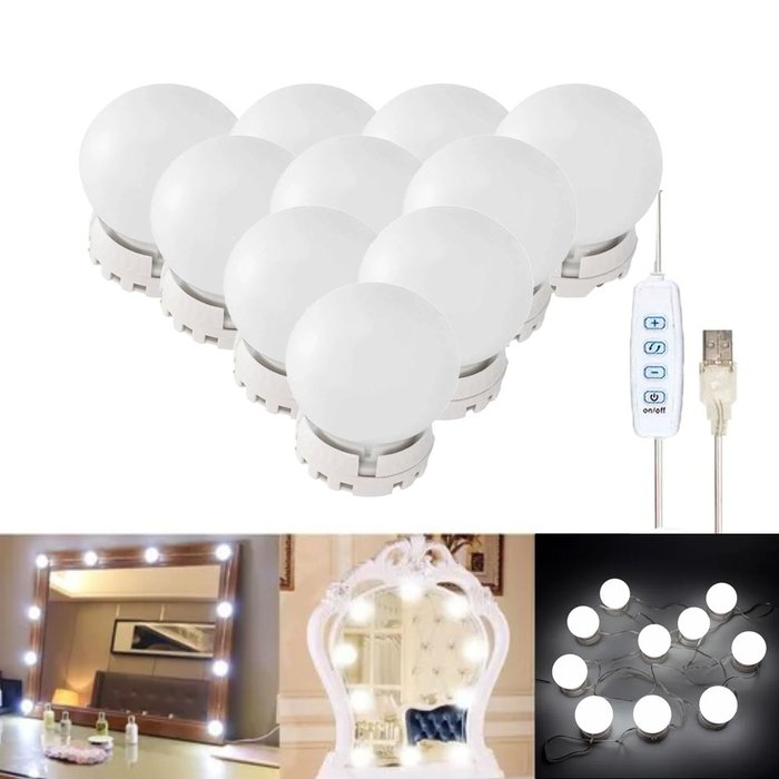 Luz De Espelho Penteadeira Camarim Maquiagem 10 Lâmpadas Led
