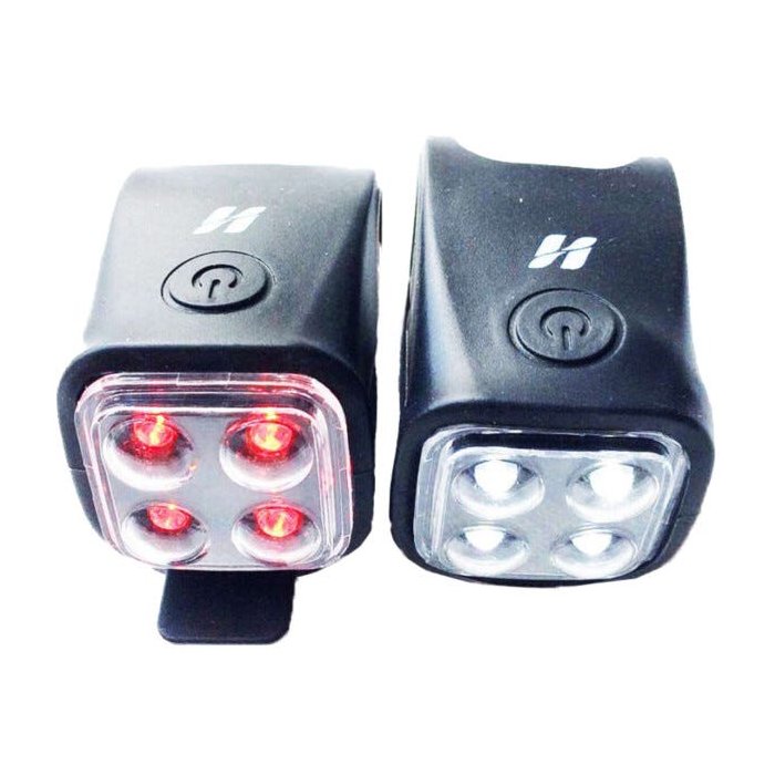 Farol de Bike Dianteiro / Traseiro 4 Leds High One Par de farol para bicicletas feito com 4 leds dianteiro, podendo ser instalados tanto no guidão quanto no garfo, e traseiro para ser instalado no canote. Possui uma cor super brilhante e 3 funções (tanto o traseiro quanto o dianteiro). Acompanha uma abraçadeira com regulagem de silicone para poder se prender a qualquer tipo de guidão. Pode ser utilizado em dias de chuva.