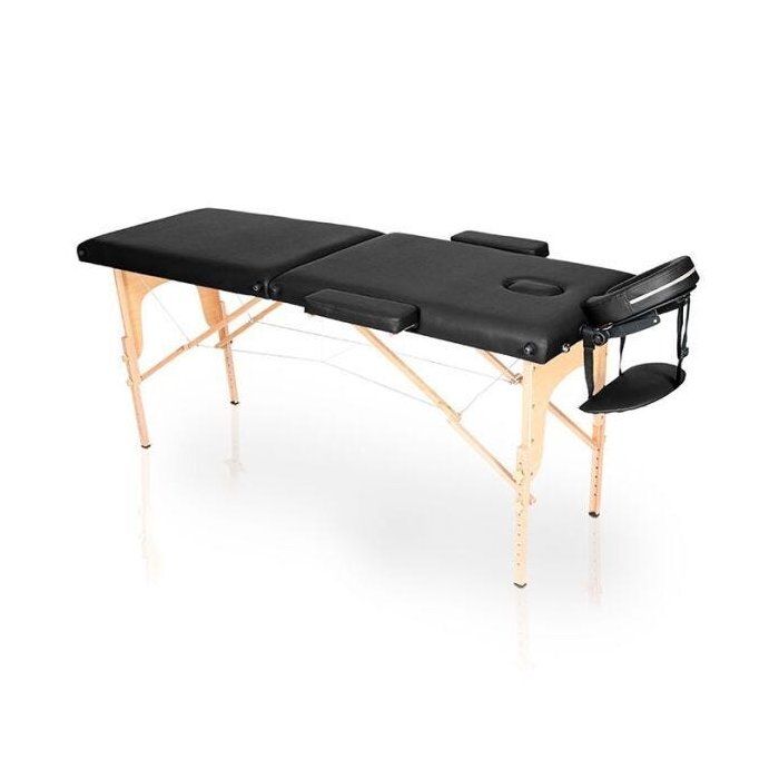 Possui regulagem de altura, orifício , apoio para cabeça com regulagem de inclinação e apoio para braços e frontal.