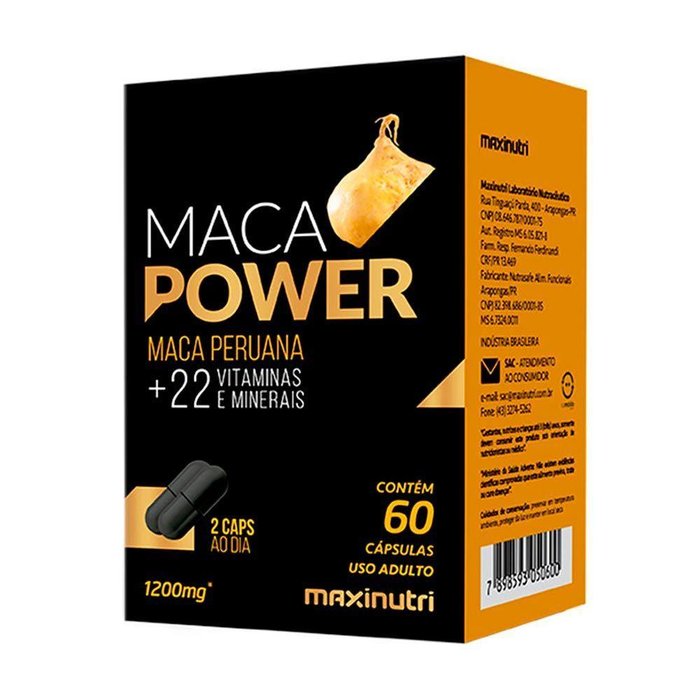 Maca Power 1200mg Vitaminas e Minerais Maxinutri 60 Capsulas