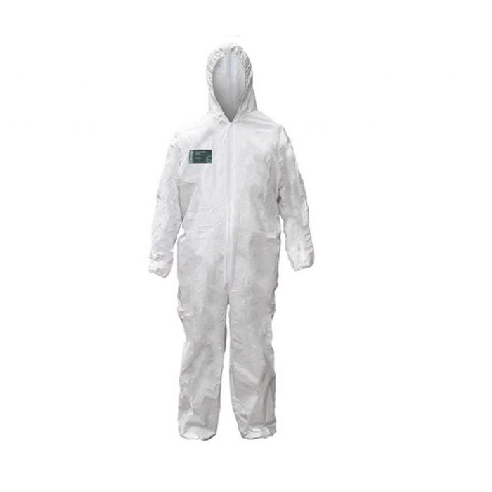 Macacão de segurança, confeccionado em não tecido de fibra de polipropileno microporoso respirável, elástico no capuz, cintura, punhos e tornozelos. Possui tratamento antiestático.