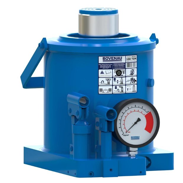 Código do Fornecedor: 100100RP Marca: Bovenau Conteúdo da embalagem: 1 Macaco Garrafa 100 T Hidráulico Com Manômetro MT100 Bovenau Informações Técnicas Capacidade de carga: 100 ton