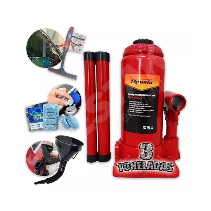 Macaco Garrafa 3 Toneladas e Funil e Kit P/Limpar para Brisa