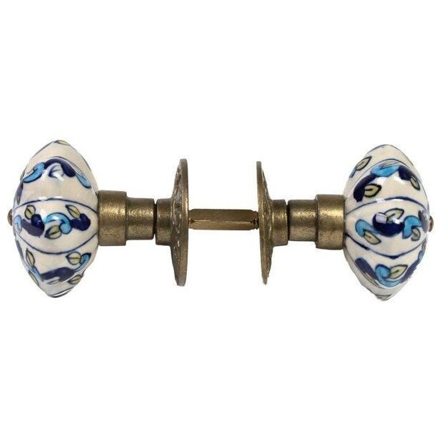 Dê um charme especial às suas portas com este lindo jogo de puxadores duplos. Feito em cerâmica de alta qualidade com acabamento detalhado em azul e branco, ele combina perfeitamente com decorações clássicas, rústicas ou provençais.