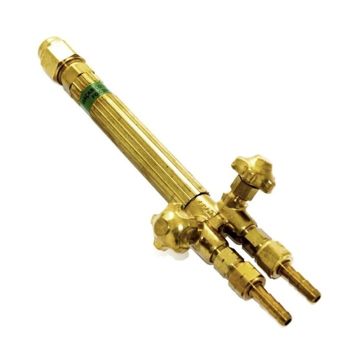 Seu corpo em latão forjado oferece resistência mecânica e durabilidade, enquanto os registros posicionados na parte dianteira do cabo permitem uma regulagem fina e eficiente do fluxo de gases, garantindo controle total durante a operação.