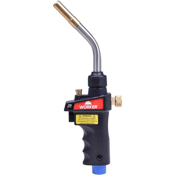 Maçarico Portátil Automático Profissional Mapp Worker Ideal para soldar redes hidráulicas usando estanho ou foscoper e tubos de cobre em sistemas de refrigeração (HVAC). Vantagens do Maçarico Portátil e Automático Mapp Worker: Material: Latão e Aço inox Portátil e de fácil uso Controle de chama Utiliza de cilindro de gás MAPP/MAP Proline (não incluso) Possui acendimento automático Atinge até 2010°C Bitola de solda: 2 para brasagem e 6 para solda.