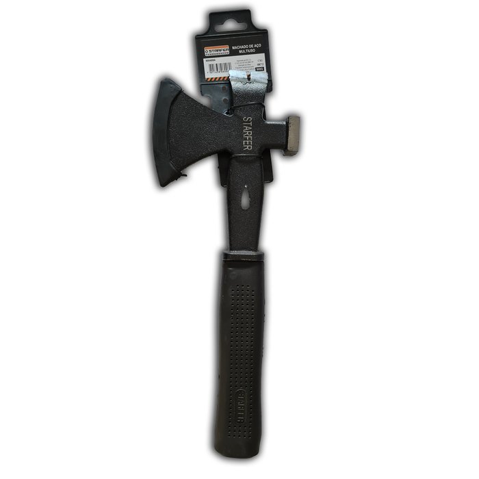 Machadinha de aço com cabo emborrachado STARFER é leve e prático de manusear, forjada e temperada em aço carbono de alta resistência com acabamento polido.