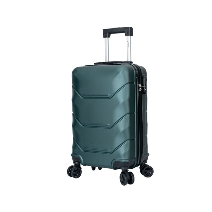 Mala de viagem injetada em material rígido de ABS, rodas que giram 360°, alça de mão retráteis, cadeado com segredo, compartimento interno e duas tiras para prender roupas.