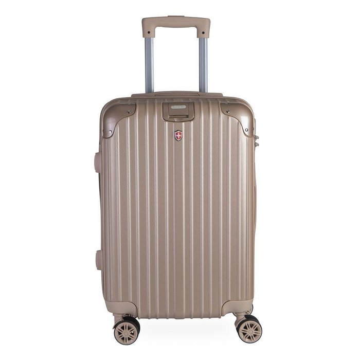 Mala de Bordo Pequena em Abs Swiss Go Suiça Cadeado Integrado Rodas Giro 360º Dourado P dourado