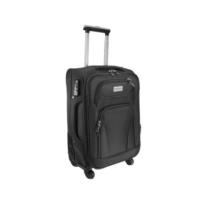 Material: poliéster Dimensões da peça: 45 x 33 x 69 cm Dimensões com o puxador estendido: 91 cm / 101 cm Compartimentos: 4 -Divisória: 1 -Profundidade: 14 cm -Forro estampado -Puxador embutido -Fechadura embutida na lateral -Zíper de expansão na lateral -Rodas duplas com giro 360graus -Fechadura TSA Cor: preta