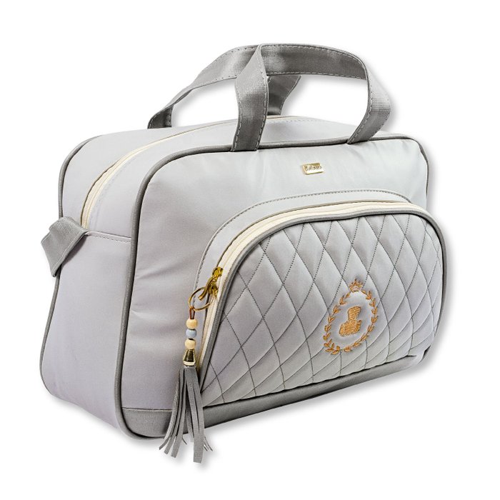 Mala Maternidade em Nylon Ursinho Realeza Cinza 41cm Cinza