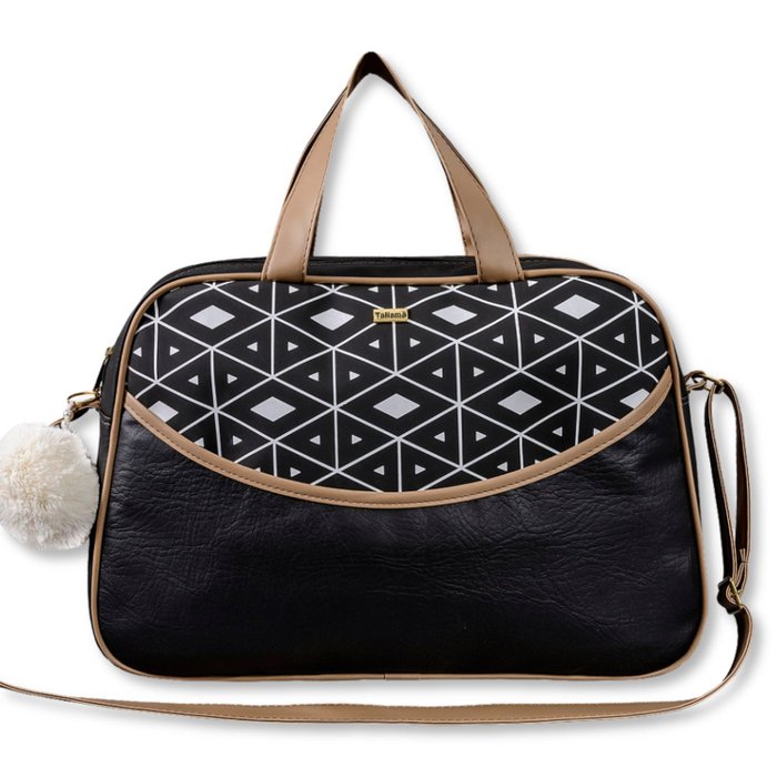 Mala Maternidade Formas Geométricas Preta com Marrom 41cm