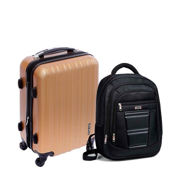 Mala P Expansível Dourada e Mochila Executiva Porta Notebook