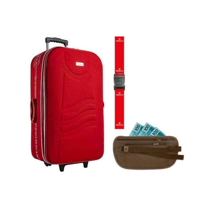 Mala Viagem Primicia Burgos com Rodinhas Pequena + Fita de Segurança + Porta Dólar