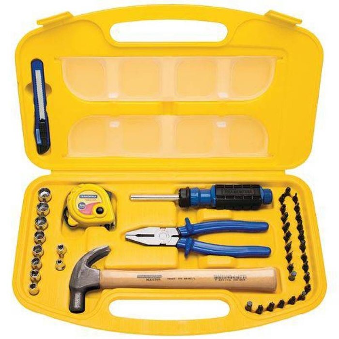 Maleta Com Ferramentas 41 PeçasComposição variada que oferece versatilidade na utilização do dia a dia. Estes produtos não podem faltar na sua caixa de ferramentas.- Maleta plástica para facilitar o armazenamento e transporte.- As ferramentas são produzidas e testadas conforme normas específicas.- Use óculos, luvas e outros equipamentos de proteção de acordo com a tarefa a ser executada. - Mantenha ferramentas de corte longe do alcance de crianças. - Mantenha as ferramentas sempre limpas para um melhor agarre, pois usá-las sujas com graxa ou óleo pode causar acidentes. - Armazene em local limpo e seco.EAN13: 7891114069174DUN14: 17891114069171Ncm: 8205.40.00Peso Líquido: 1,6500 kg.Peso Bruto: 1,6500 kg.Metragem: 0,005756 m³.Dimensões Embalagem (Compr. X Larg. X Alt.): 385x 230x 65 mm.Dimensões Produto (Compr. X Larg. X Alt.): 385x 230x 65 mm.Dimensão Extra A: 220,0 mm.Dimensão Extra B: 380,0 mm.Dimensão Extra C: 60,0 mm.Maleta Com Ferramentas 41 Peças