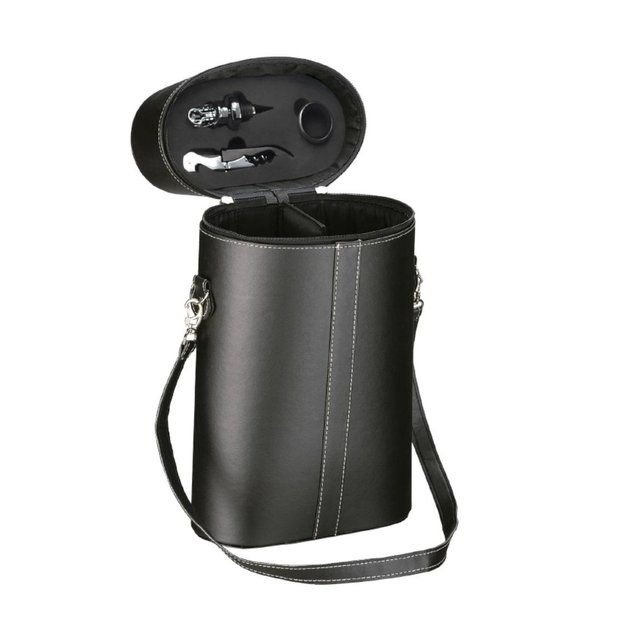 Além do seu design moderno e elegante, acompanham esta maleta um Saca-Rolha 2 estágios, um Salva-gotas anel e um Corta gotas com tampa! Ideal para evitar que, após servir o vinho, alguma gota caia na toalha. A tampa permite fechar o vinho enquanto ele está sendo degustado, porém não tem poder de vedação nem serve como salva-vinho.