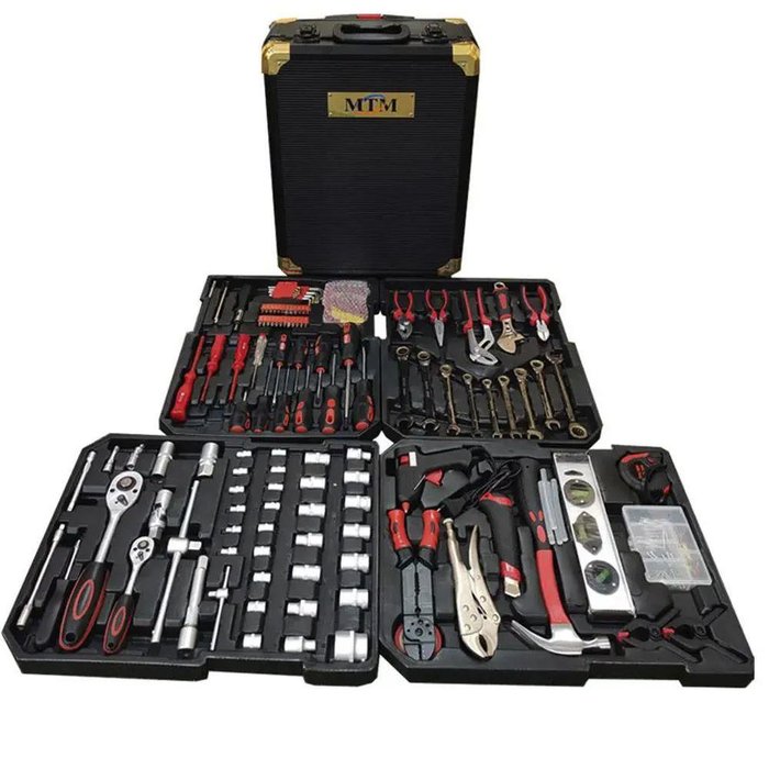 A caixa de alumínio com 187 ferramentas Cromo Vanádio, contém uma haste de tração, que facilita o transporte com um baú. Contém 4 gavetas que podem ser usadas independentemente. O conteúdo de cadas gaveta é: Primeira gaveta: chaves de fenda de precisão, chaves hexagonais, brocas, cabo de broca, chave de fenda. Segunda gaveta: chave ajustável, alicate, chaves combinadas. Terceira gaveta: barra deslizante, barra de extensão, juntas universais, alças de catraca, soquetes, soquetes de velas de ignição, alça giratória. Quarta gaveta: braçadeira de nylon, martelo de garra, fita métrica, nível, alicate de crimpagem, faca utilitaria. Existem rodas na parte inferior da caixa de alúminio para facilitar a movimentação.
