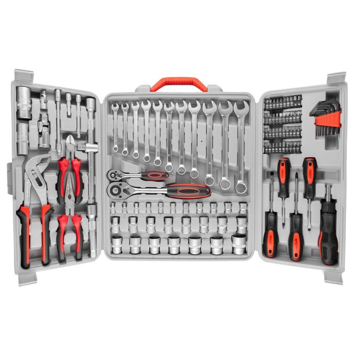 Maleta de ferramentas com 110 peças - EDA O QUE É A MALETA DE FERRAMENTASUma maleta com ferramentas é uma solução conveniente para armazenar e transportar uma variedade de ferramentas manuais. Geralmente feita de materiais duráveis como plástico resistente, metal ou lona, essa maleta é projetada com compartimentos internos, bandejas ou bolsos para organizar as ferramentas de maneira eficiente. Essas maletas são ideais para uso doméstico, profissional ou mesmo para veículos de emergência. Elas podem conter uma variedade de ferramentas, como chaves de fenda, alicates, chaves ajustáveis, martelos, entre outras, dependendo do conjunto específico. As maletas com ferramentas oferecem conveniência e praticidade, garantindo que as ferramentas estejam sempre prontas para uso e facilmente transportáveis para diferentes locais de trabalho. COMO UTILIZAR A MALETA DE FERRAMENTASPara usar uma maleta com ferramentas, organize as ferramentas dentro da maleta de acordo com suas preferências, selecione a ferramenta necessária para a tarefa em questão, utilize-a seguindo práticas de segurança, limpe e retorne a ferramenta à sua posição original após o uso e mantenha a maleta limpa e organizada para facilitar o acesso futuro às ferramentas. Realize manutenção regular nas ferramentas para garantir que estejam em boas condições de funcionamento. Seguindo esses passos, você pode aproveitar ao máximo sua maleta com ferramentas, mantendo suas ferramentas prontas para uso quando necessário. DESCRIÇÃO DA MALETA DE FERRAMENTAS- Medidas: 40 x 36 x 9cm- 1 Alicate de corte diagonal 6”- 1 Alicate de meia cana 8”- 1 Alicate bomba d’água 10”- 1 Adaptador para bits com cabo e catraca encaixe de 1/4”- Bits com encaixe de 1/4” sendo: 7 Bits fenda: 3,5 (2 peças), 4 (2 peças), 5,5, 6,5 e 8 mm. 3 Bits quadradas: S1, S2 e S3. 8 Bits phillips: PH0 (2 peças), PH1 (2 peças), PH2 (2 peças) e PH3 (2 peças) - 2 Adaptadores- 7 Bits torx: T10, T15, T20, T25, T27, T30 e T40- 3 Bits pozidriv: PZ1, PZ2 e PZ3- 4 Bits tri-wing: 1, 2, 3 e 4- 6 Bits allen: 2, 3, 4, 5, 6 e 7 mm- 1 Cabo T de 10” com extensão encaixe de 1/2”- 1 Catraca reversível de 10” com encaixe de 1/2”- 1 Catraca reversível de 6” com encaixe de 1/4”- 2 Chaves de fenda: 5,0 x 75 mm, 6,0 x 100 mm- 2 Chaves phillips: #1 x 75 mm, #2 x 100 mm- 11 Chaves combinadas: 8, 9, 10, 11, 12, 13, 14, 15, 17, 18 e 19 mm- 8 Chaves hexagonais: 1.5, 2, 2.5, 3, 4, 5, 5.5 e 6 mm- 1 Extensão de 5” com encaixe de 1/2”- 1 Extensão de 2” com encaixe de 1/4”- 1 Extensão de 4” com encaixe de 1/4”- 1 Extensão flexivel 6” 1/4”(M) x 1/4”(F)- 1 Junta Universal com encaixe de 1/2” - 1 Junta Universal com encaixe de 1/4”- 2 Soquetes de vela: 16 mm e 21 mm- 15 Soquetes sextavados com encaixe de 1/2”: 10, 11, 12, 13, 14, 15, 17, 18, 19, 21, 22, 23, 24 e 27 mm- 11 Soquetes sextavados com encaixe de 1/4”: 4, 5, 6, 7, 8, 9, 10, 11, 12, 13 e 14 mm- 1 Suporte para chaves hexagonais- 4 Suportes para os bits-1 Maleta com berços e identificação de medidas- Marca: EDA- Código:9SR Distribuidor Autorizado para todo o Brasil. O Grupo Piveta Ferramentas é uma empresa com mais de 30 anos no mercado e líder no segmento de Máquinas e Ferramentas para Usinagem, contamos com mais de 25 Mil produtos para melhor lhe atender.Temos como compromisso um atendimento e excelência na prestação de serviços.. Não perca tempo procurando, a ferramenta certa para você está aqui.É importante ressaltar também que nossa atuação não se limita ao setor de Usinagem Mecânica, nossa variedade de produtos nos permite atender a vários setores como Agronegócio, Embalagem Plástica, Retifica de Motores, Usinas de Açúcar e Álcool, Manutenção Industrial (Usinagem e Caldeiraria), Mineração, Área de Fertilizantes, Frigoríficos, Usinagem Médio para Grande Porte e Automação Industrial. Desta forma fortificando e ajudando no desenvolvimento econômico do nosso país.