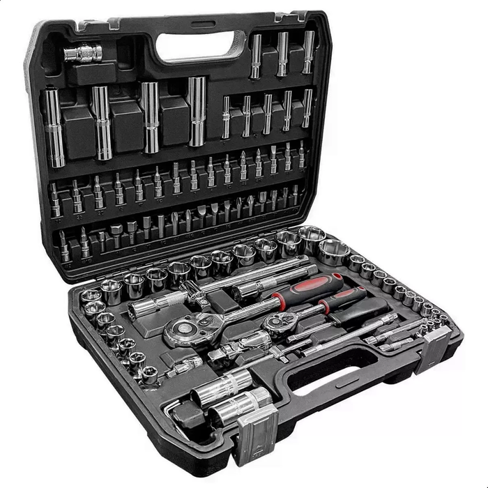 Potência e Durabilidade em um Kit Completo de Ferramentas! Fabricadas em aço Cromo Vanádio, nossas peças oferecem resistência excepcional. Com uma ampla variedade de medidas, você sempre terá a ferramenta certa em mãos. O acabamento cromado e o cabo emborrachado garantem conforto e durabilidade. A maleta facilita a organização, com identificação de medidas para conveniência máxima.