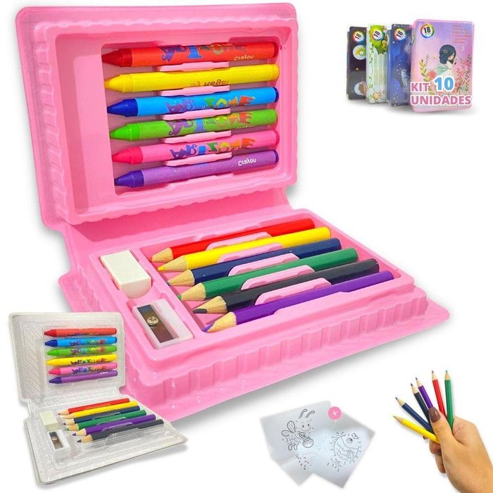 Desperte a Imaginação com a Maleta de Pintura Infantil de 18 Peças! Explore um mundo vibrante de criatividade com a nossa maleta de pintura projetada especialmente para crianças curiosas e destemidas. Com 6 gizes de cera, 6 lápis de cor e 4 jogos de ligar os pontos, esta maleta é um tesouro repleto de cores educativas e divertidas. Cores Vibrantes, Aventuras Ilimitadas: Deixe a imaginação voar com uma paleta de cores deslumbrante! Os 6 gizes de cera e 6 lápis de cor oferecem infinitas possibilidades para dar vida às ideias mais criativas. Aprender Brincando: Os 4 jogos de ligar os pontos não são apenas uma diversão emocionante, mas também estimulam a coordenação motora e o desenvolvimento cognitivo das crianças. Assistir aos desenhos ganharem forma é uma experiência educacional e gratificante! Detalhes Importantes: Incluímos um apontador para manter seus lápis sempre prontos para a ação e uma borracha para corrigir pequenos erros. Afinal, a arte ensina que todos os traços são valiosos. Portátil e Organizado: Nossa maleta é perfeita para levar em aventuras criativas - em casa, na escola ou em viagens.Tudo é mantido organizado em um espaço, pronto para acompanhar os pequenos artistas onde quer que eles vão.. Estimule a expressão criativa, o aprendizado e a diversão com a Maleta de Pintura Infantil de 18 Peças. É mais do que uma maleta - é um portal para um mundo de cores e imaginação. Presenteie seu pequeno artista hoje e inspire um futuro brilhante! Funções: Expressão da criatividade, estimular a imaginação. O que você vai receber em sua casa? (conteúdo da embalagem) Kit 10 Maletas de pintura infantil. Cada uma contém: 6 Giz de Cera 6 Lápis de Cor 4 Ligue es Pontos Apontador Borracha Dimensões aproximadas: Altura: 3 cm Largura: 9,5 cm Comprimento: 14 cm Material: Plástico Idade recomendada: