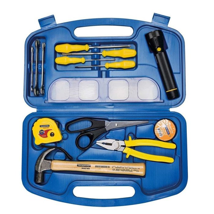 Maleta Ferramentas Tramontina 73 PCS 41191/073 Referência: 41191/073 Maleta com ferramentas 73 peças Cód. 41191073 Composição variada que oferece versatilidade na utilização do dia a dia. Estes produtos não podem faltar na sua caixa de ferramentas. Informações Gerais Maleta plástica para facilitar o armazenamento e transporte. Itens inclusos: - 1 Tesoura uso geral 7 pol - 1 Martelo de unha 18 mm - 1 Alicate universal 7 pol - 1 Chave fixa 8x9 mm - 1 Chave fixa 10x11 mm - 1 Chave fixa 12x13 mm - 1 Chave de fenda ponta chata 1/8x3 pol - 1 Chave de fenda ponta cruzada 1/8x3 pol - 1 Chave de fenda ponta chata 3/16x4 pol - 1 Chave de fenda ponta cruzada 3/16x4 Pol - 1 Trena métrica 3 mts - 1 Lanterna pequena 2 AA - 30 Buchas em Nylon S-6 - 30 Parafusos para madeira 4,2x50 - 1 Fita