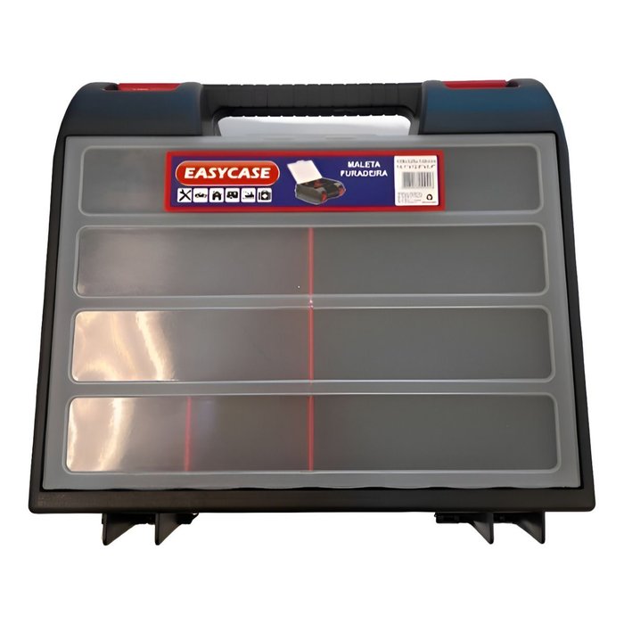 Contém: 1 maleta furadeira com tampa incolor com duas divisórias removíveis pequenas e uma divisória removível grande , não incluso as ferramentas.