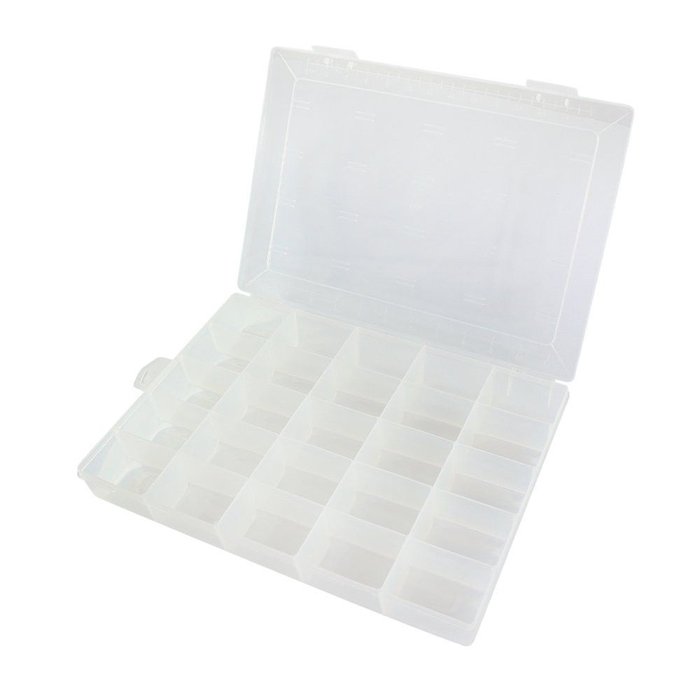 Perfeita para manter seus itens essenciais sempre organizados e ao alcance das mãos, esta maleta será a escolha ideal para armazenar diversos itens, desde ferramentas e materiais de artesanato até acessórios pessoais e itens de escritório.Com design transparente, além de facilitar a visualização dos itens, conta com múltiplos compartimentos, garantindo que cada item tenha seu próprio lugar.Leve e compacta, a maleta é fácil de limpar e manter, oferecendo uma solução prática para o dia a dia, seja para organizar o espaço de trabalho, itens de hobby ou levar itens essenciais.Seu design conta também com travas eficientes, garantindo que nenhum item caia por acidente.Feita de material de qualidade, possui praticidade e uma ótima resistência, garantindo segurança para os itens guardados. -25 divisórias;-2 travas;-Divisórias de 7cm x 4,5cm. ESPECIFICAÇÕS:Material: PolipropilenoDimensões: Comprimento: 33cm x Larg.: 22,9cm x Alt.: 4,3cmPeso: Aprox. 300g CONTÉM:01 MALETA ORGANIZADORA DE PLÁSTICO TRANSPARENTE 25 DIVISÓRIAS