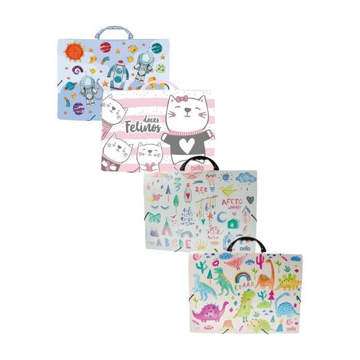 MALETA OFÍCIO KIDS SORTIDA COM ESTAMPAS EM TONS AQUARELADOS.