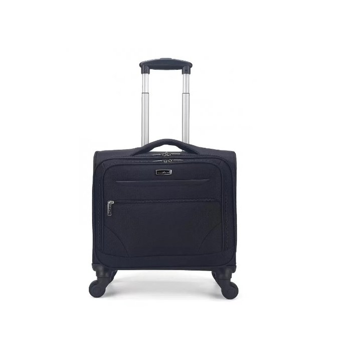 A Maleta Polo King para Notebook com Rodas EC21023PK é fabricada em Poliéster e possui: Na parte interna, compartimento para notebook, na parte externa, alça de mão, bolso frontal com fechamento em zíper, puxador com botão liberador com estágios para regulagem de altura, carrinho em alumínio embutido, 4 rodas com giro 360°, identificador de bagagem e fechamento em zíper.