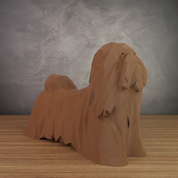 Maltês Pelo Longo Geométrico Decorativo Vegras Marrom